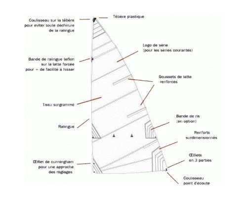 Grand-voile Ponant fabriquée en France, livrée sans sac ni latte, conforme jauge, personnalisable en laizes couleur.