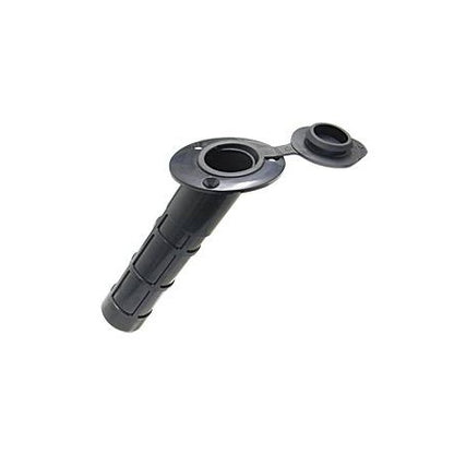 Porte-canne encastré en plastique ABS noir, avec bouchon en PVC intégré, idéal pour les applications marines grâce à sa légèreté et sa résistance.